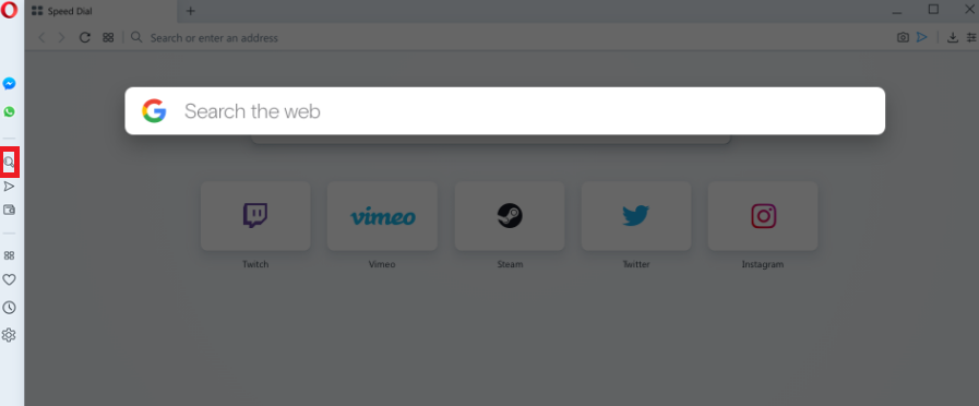 You can simply by clicking “ALT+Space” open instant search or clicking left search icon. If you have many tabs opened in opera browser then for finding tabs you may use instant search.