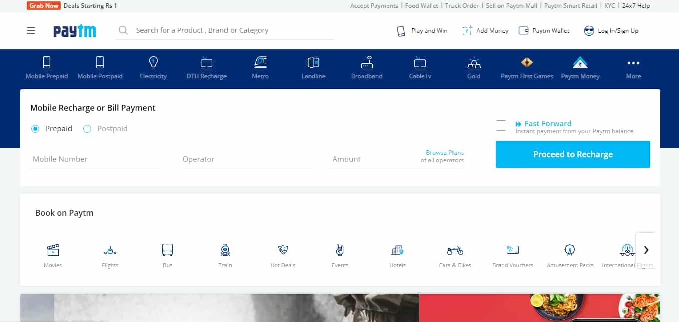 - Paytm services available in both web or app platform.
