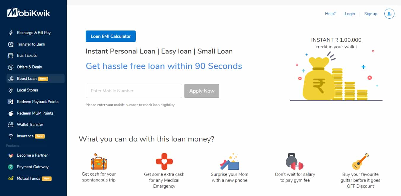Special feature of Mobiwiki is it offers loans to Mobiwiki users. In Mobiwiki offer tab, you can surf or select the best offer.